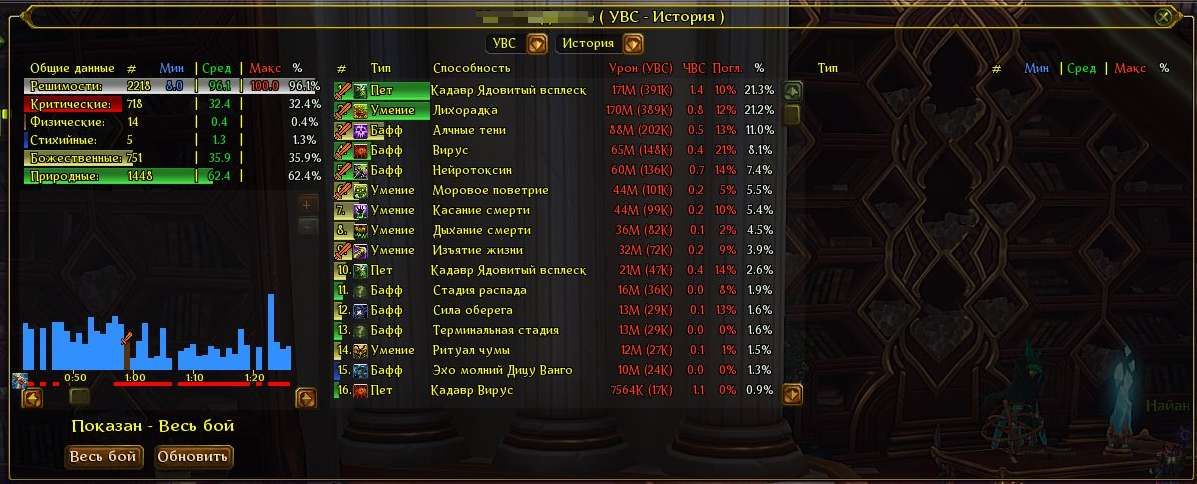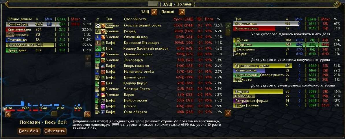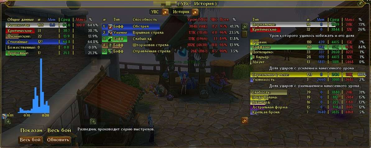 - График нанесения урона во времени, с возможностью посмотреть данные за каждый промежуток времени